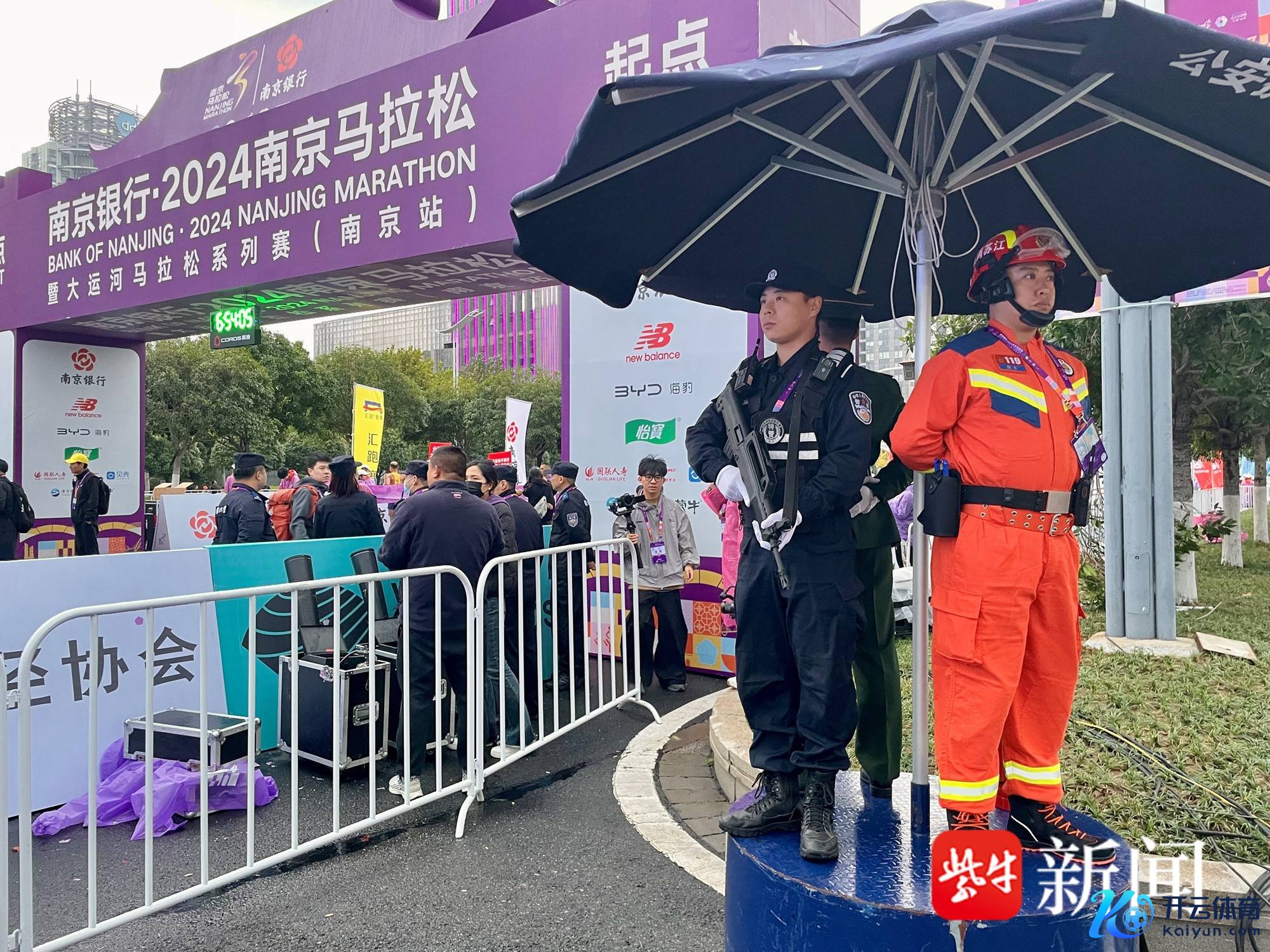 秋雨微凉,曙光微亮。凌晨4时许,南京警方执勤民警早早来到了南马42.195公里的赛说念沿线,嘱咐造就线、护栏、锥桶等封闭设施。在奥体中心起跑点,执勤警力定点布岗、管控东说念主流,保重进口、安检通说念的递次;在赛说念沿线,由特警、武警、消防构成的120个单兵组定点值守,警用无东说念主机和水上快艇不阻隔考核,从路面、空中、水上对“南马”作念好全标的安全保险。