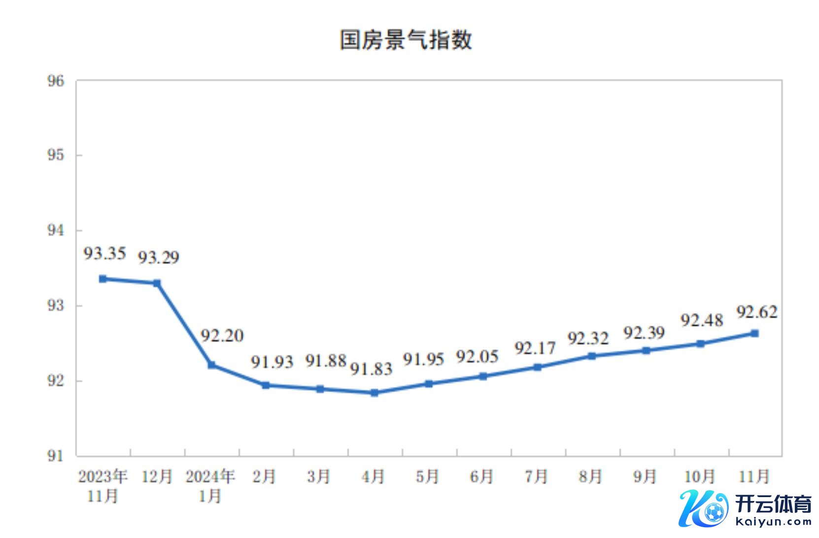 11月份,房地产开导景气指数(简称“国房景气指数”)为92.62。