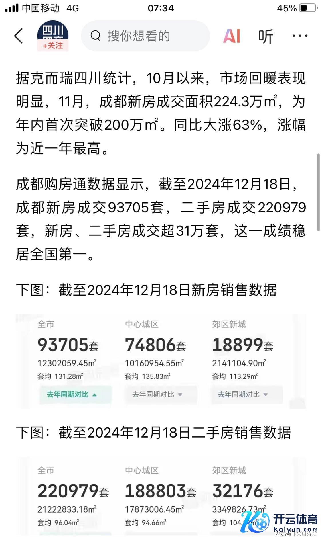 成齐购房通数据暴露,鸿沟2024年12月18日,成齐新址成交93705套,二手房成交220979套,新址、二手房成交超31万套,这一收获稳居宇宙第一。显着,近期不绝出台刺激楼市计谋,关于举座房价的下滑有一定的遮挡成果。