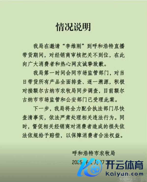 1月17日晚,呼和浩特市农牧局公开致歉,称对经销商审核把关不到位。开端:聚积