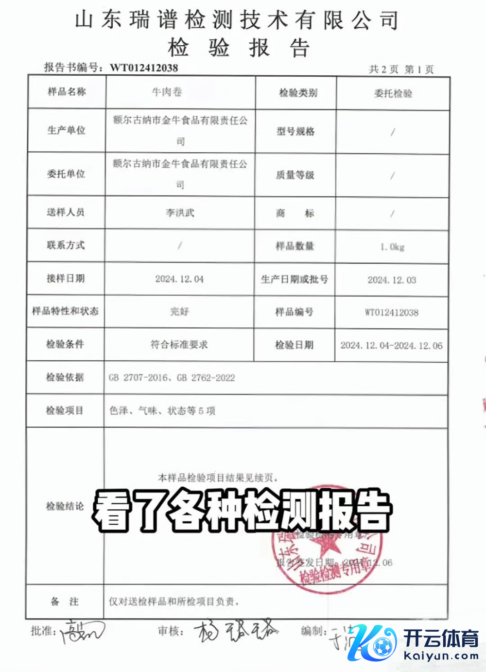 对此发现,两份《畜禽定点宰杀证》的宰杀动物、换证日历有所不同。李维刚晒出的《老到评释》涌现,牛肉卷的坐蓐单元是金牛食物有限公司,交付单元亦然该公司,送样东说念主员为李洪武,老到日历为2024年12月4日至2024年12月6日。老到单元为山东瑞谱检测工夫有限公司(以下简称“瑞谱检测公司”)。对此,金牛食物有限公司此前发布视频报酬称,该公司位于内蒙古呼伦贝尔,若要送检,亦然就近寻找检测公司,如在内蒙古、吉林、辽宁找,不会跑去找山东的公司。