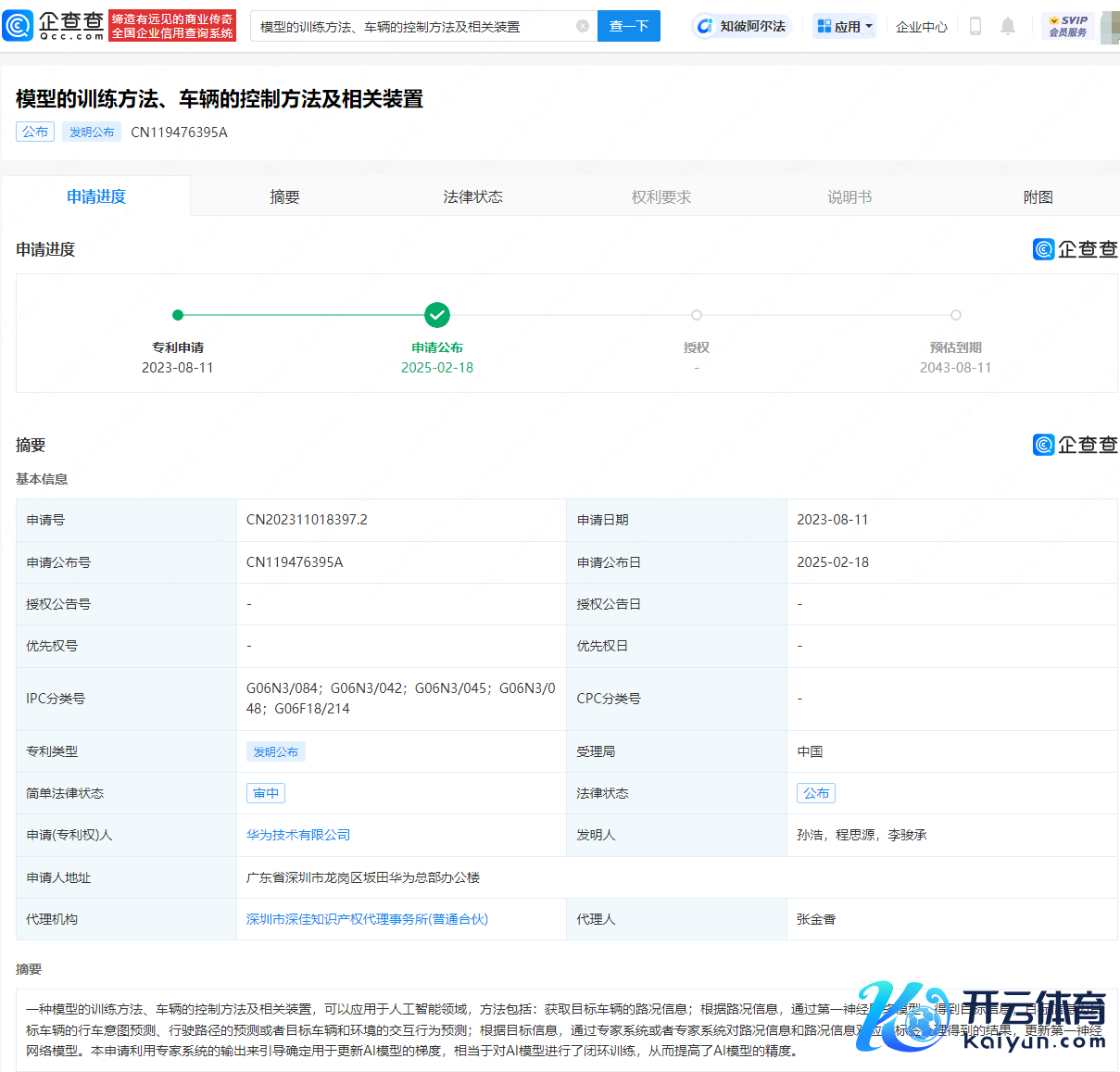 企查查APP知道,近日,华为时刻有限公司肯求的“模子的试验次序、车辆的截止次序及干系装配”专利公布。