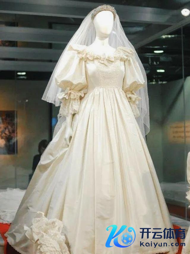 这件婚纱长达8米,符号着婚配恒久完好意思。婚纱的花边上镶着彻亮的珍珠,闪闪发光。荷叶袖是用蕾丝作念的,上头还有别致的小蝴蝶遮挡,把戴安娜王妃的细腰映衬得愈加迷东说念主。