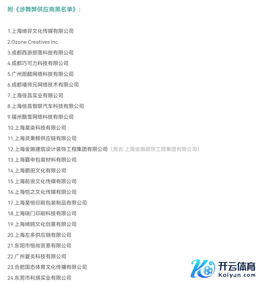 除了对涉案职工进行科罚,米哈游还公布了上述案件中波及交易行贿、利益运送及利益梗阻的供应商名单,并将其列入《涉作弊供应商黑名单》,永不对作。这份名单涵盖了多家公司,包括上海绮羿文化传媒有限公司、Ozone Creatives inc.、成王人西游部落科技有限公司等24家企业。