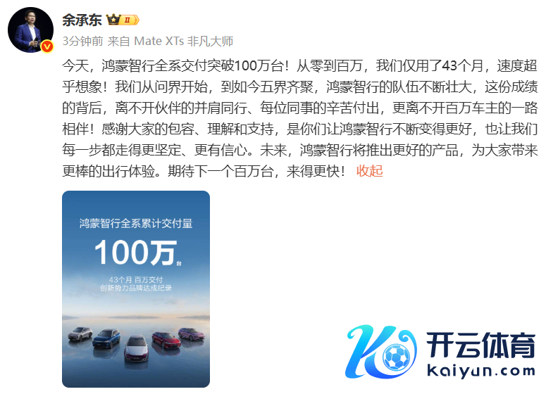 余承东:鸿蒙智行全系寄托龙套100万台余承东:鸿蒙智行全系寄托龙套100万台